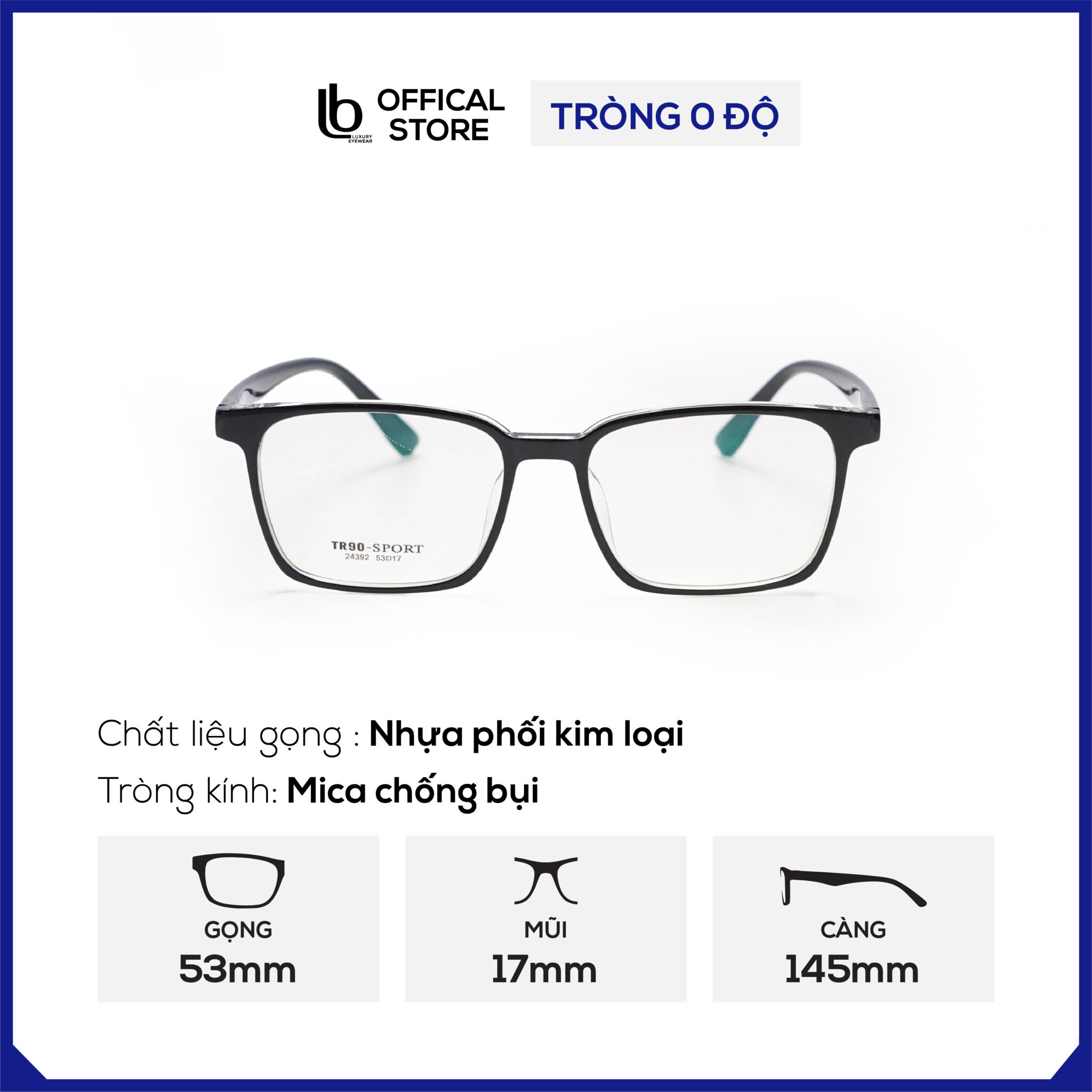 Gọng kính vuông chữ nhật LB Eyewear 24392 mắt kính cận 0 độ chất liệu nhựa cao cấp, nhẹ hơn 30%, dễ dàng điều chỉnh form