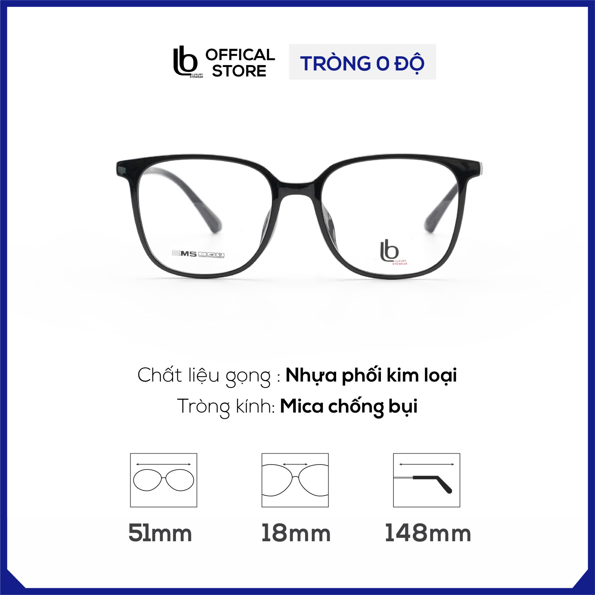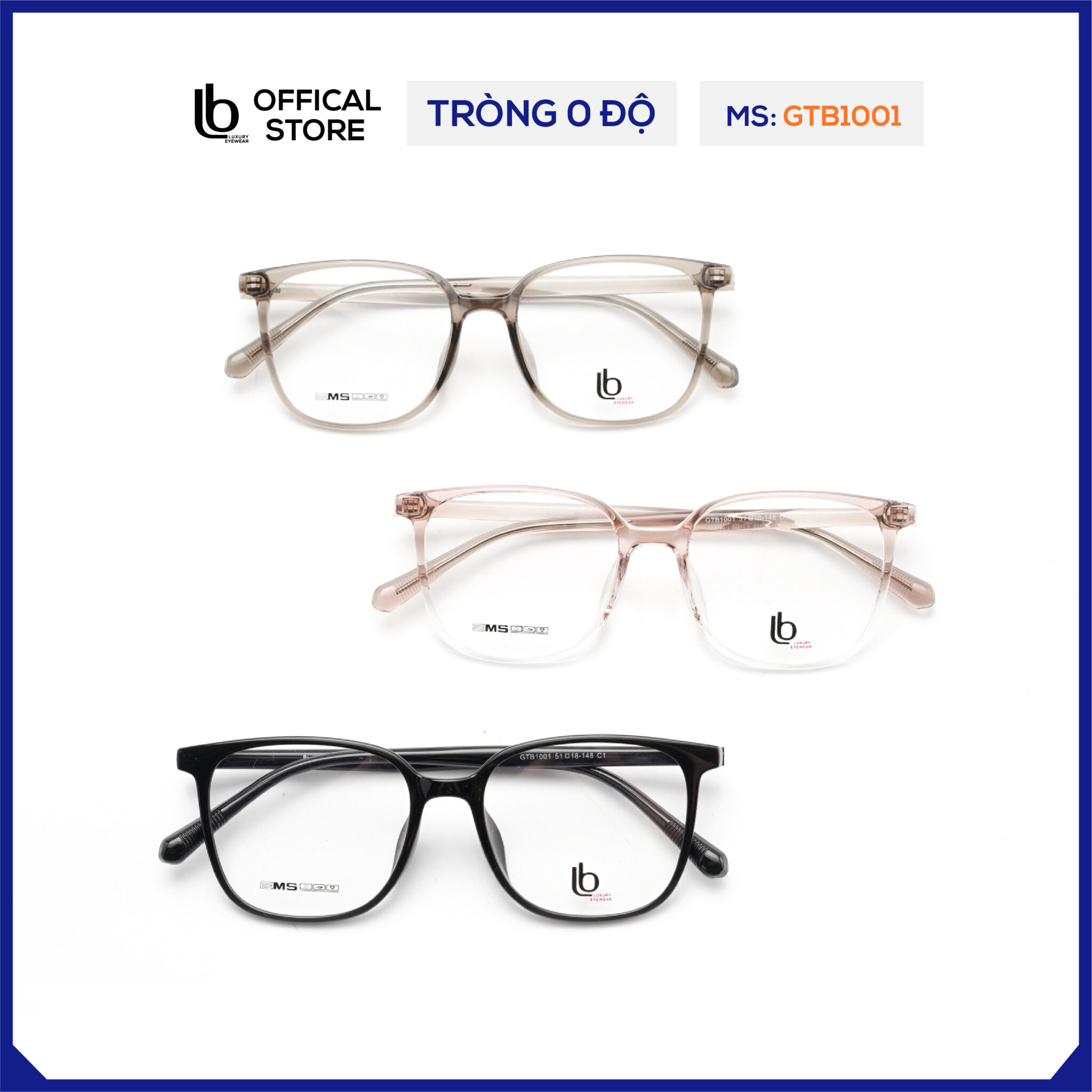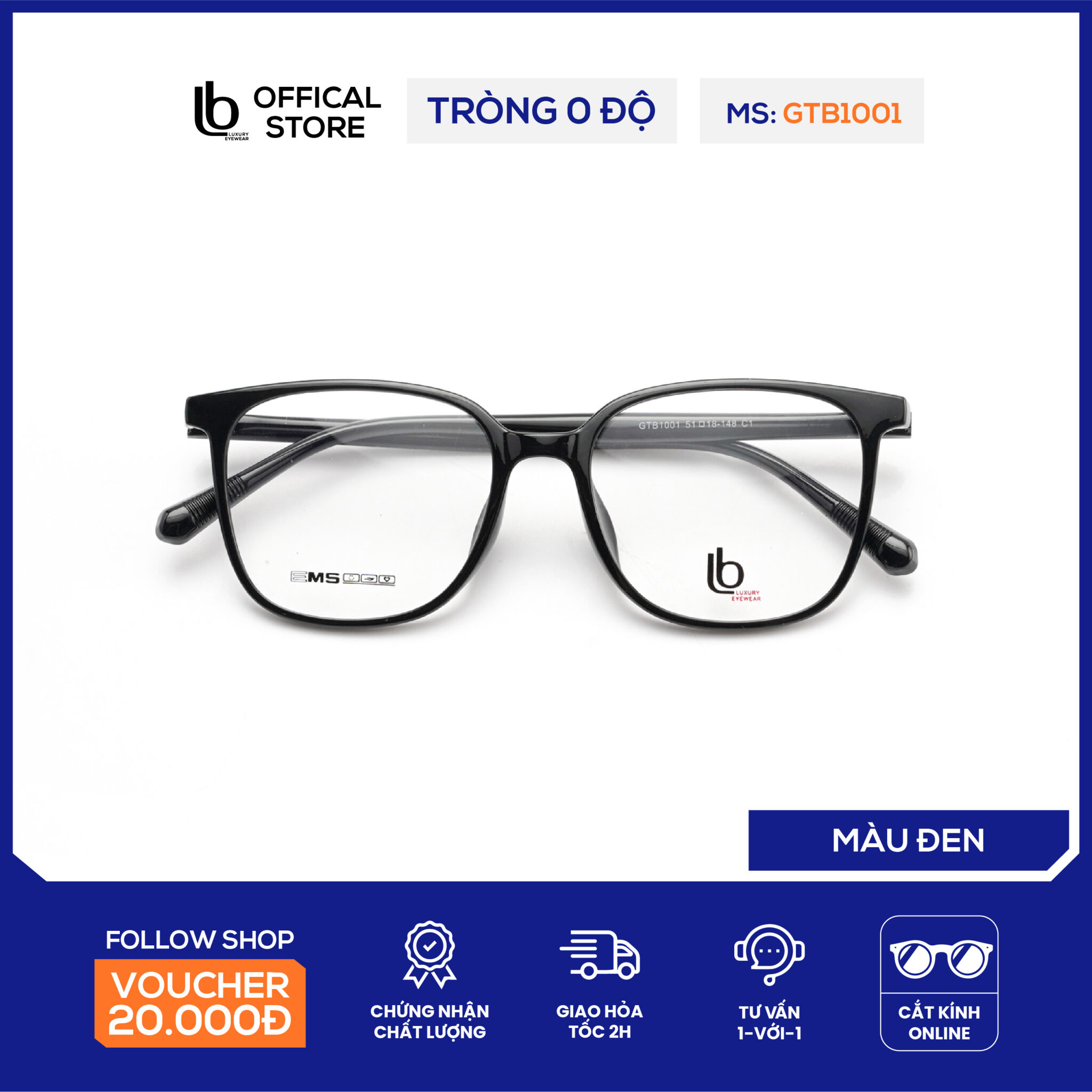 Kính gọng vuông LB Eyewear GTB1001 mắt kính cận 0 độ, chất liệu nhựa có thể lắp tròng chống ánh sáng xanh, đổi màu