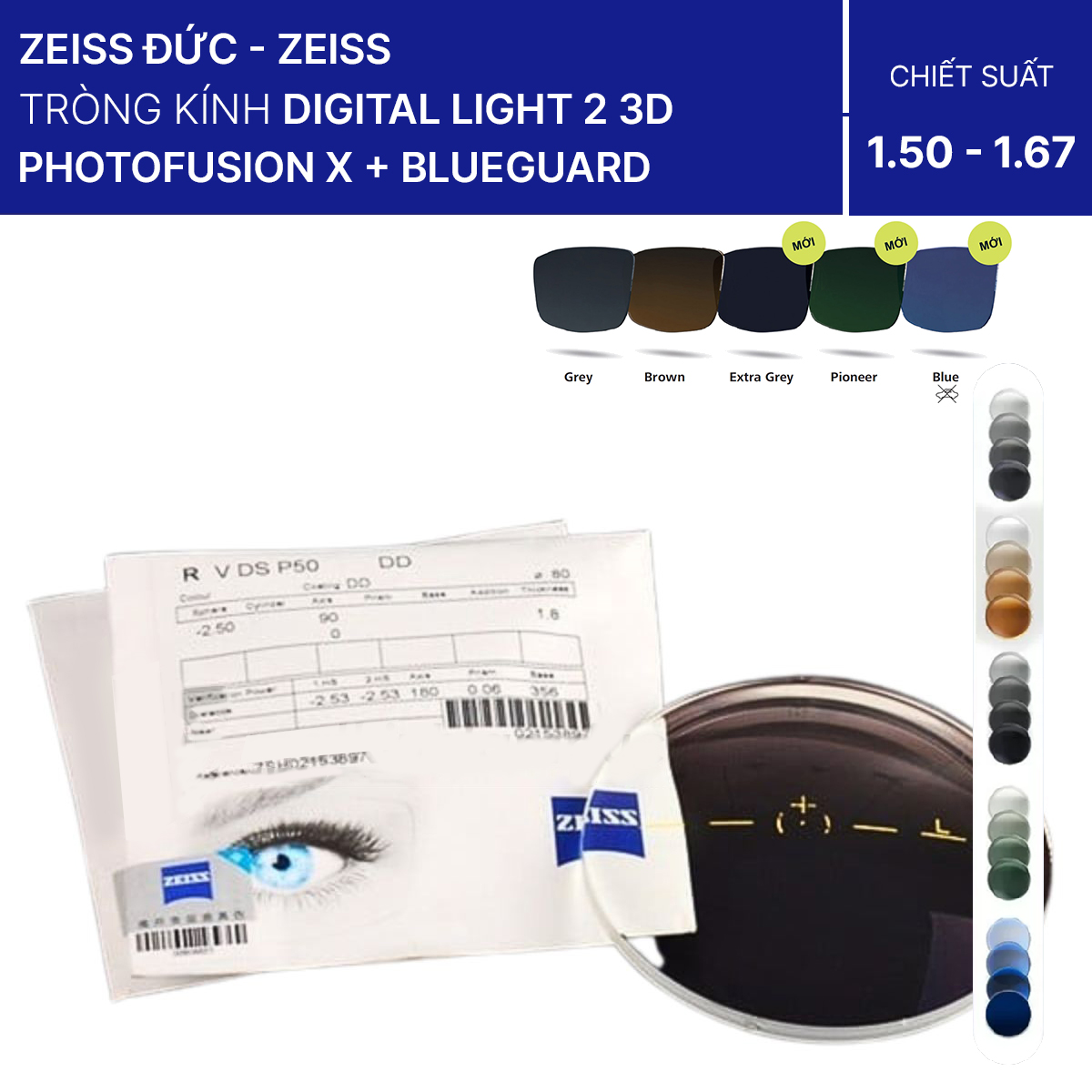 Tròng Kính ZEISS Digital Light 2 3D PhotoFusion X Với BlueGuard DuraVision Platinum UV, FLash, AntiVirus Platinum